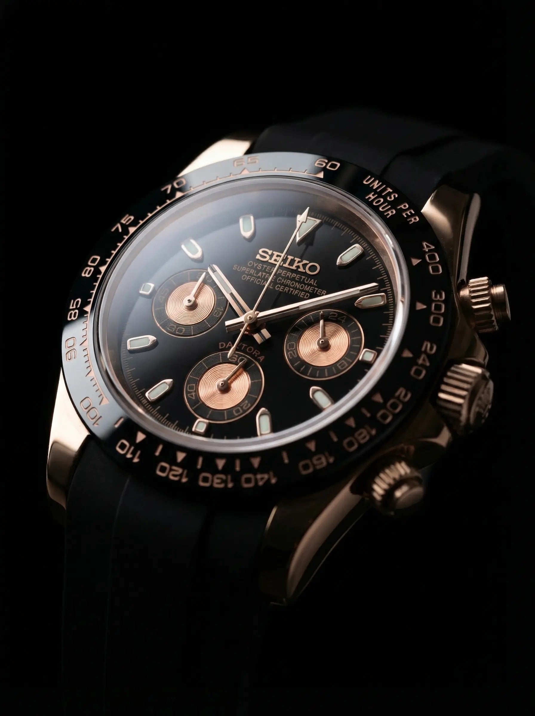 Ein Seiko Mod ist eine individuell konfigurierte Uhr, die aus sorgfältig ausgewählten kompatiblen Komponenten neu zusammengesetzt wird.